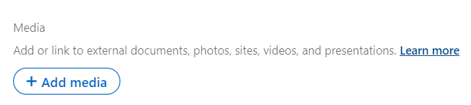 To add media, click on the pencil icon next to a specific job listing on your profile and scroll down until you see the media section.