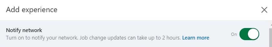 - You can update your Experience section without notifying your network, or choose to share publicly when timing makes sense.