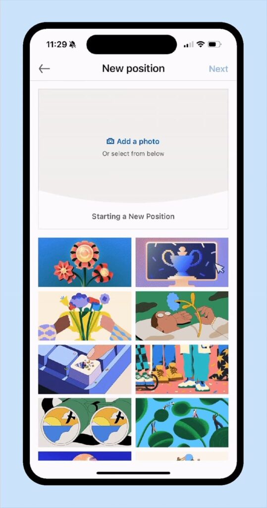 Even if it’s not related to your new job promotion, you can still add some visuals to your profile to help you stand out.