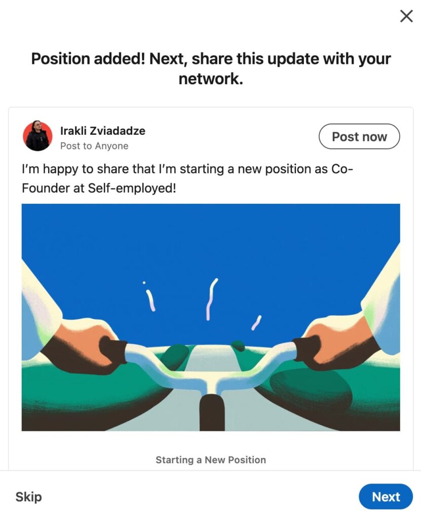 Of course, this is ideal if you want to show a promotion on LinkedIn and let everyone know about it.