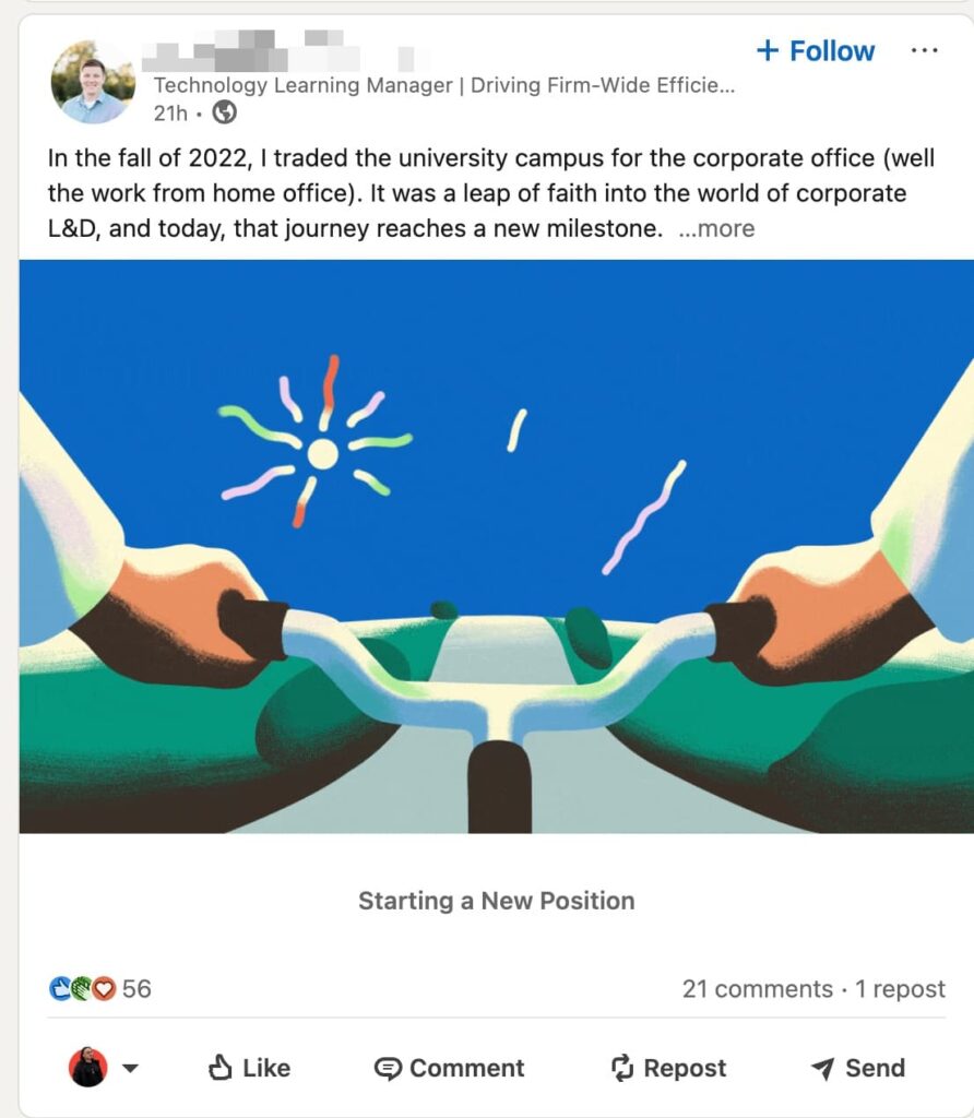 You don’t need to design anything for these posts to work, but poorly structured experience entries can result in vague or low-engagement celebration posts.