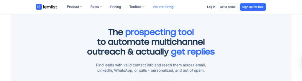 Next on the list is lemlist. The AI sales lead generation tool lets you build a multichannel sequence to expand your reach and engage prospects. Whether it’s email, phone call, LinkedIn messages, or WhatsApp, you can reach out to your audience with ease.
