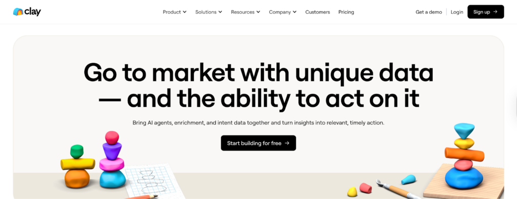| Clay | Data enrichment | Waterfall enrichment Intent signalsVast integrations | Free trial available; paid plan starts at $149 per month. |