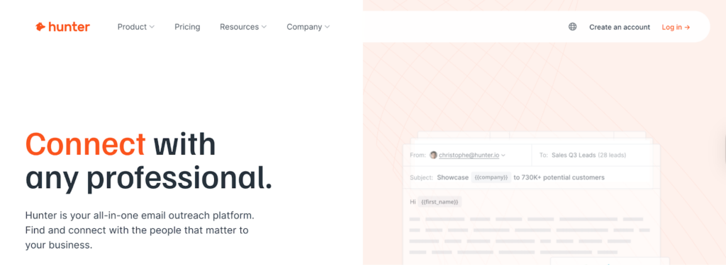 | Hunter.io | Email finderEmail verifierAI writing assistant | Free trial available; paid plans start at $53 per month. |