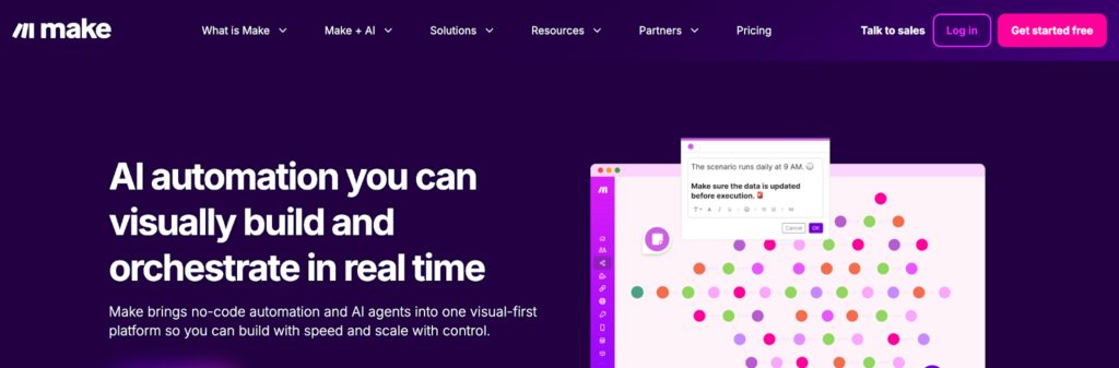 | Make (formerly Integromat) | User-friendly interfaceIntegrations | Free trial available; paid plans start at $9 per month |