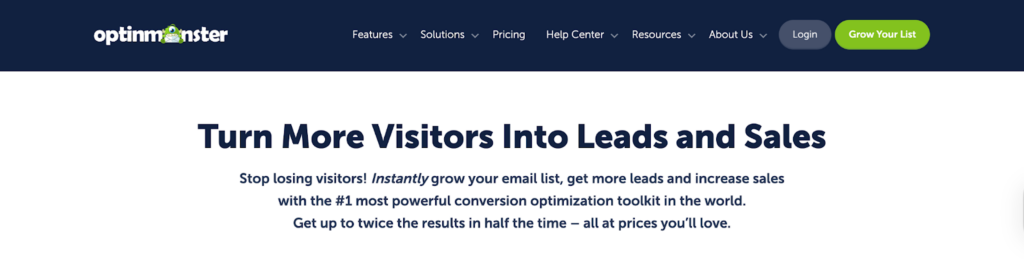 OptinMonster is another lead-generation tool that helps users create personalized opt-in and pop-up forms to convert visitors into leads. With OptinMonster, you can monetize your website traffic through these features: