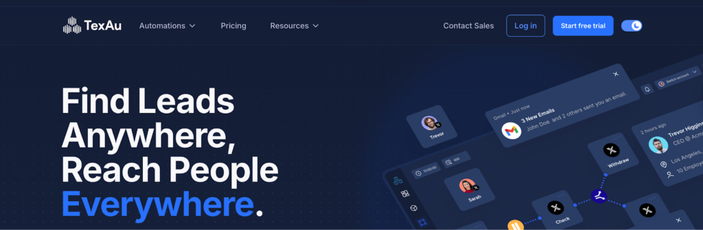 | TexAu | Lead identification and targetingEmail verification | Free trial available; plan starts at $29 per month. |