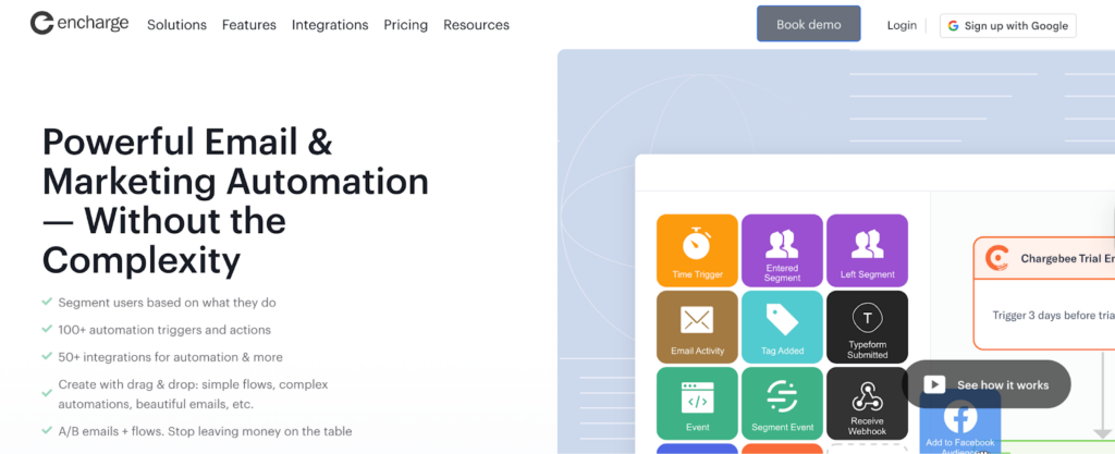 | Encharge | Visual flow builderBehavioral emailsLead scoring | No free trial; plans start at $79 per month. |