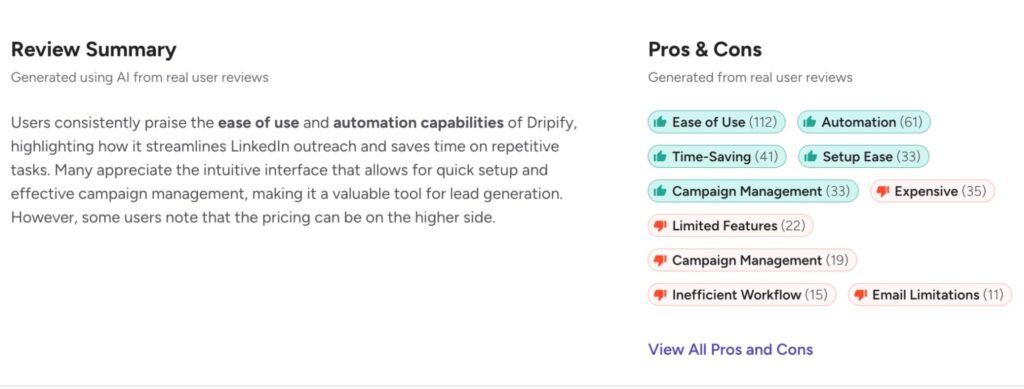 • Sequence flexibility – Dripify supports structured sequences (including basic conditions/branches), but sales teams might want deeper behavior-based logic, more scenario depth, and more control over how campaigns adapt as replies change.