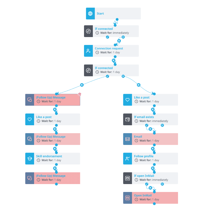 With Actions and Conditions, you can set up your LinkedIn outreach.
