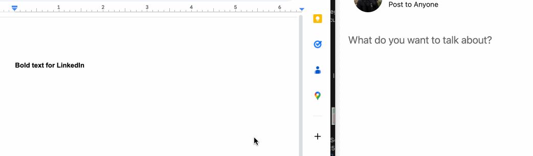 Another method to make text bold in LinkedIn post content is to copy pre-formatted text from Google Docs or Word. Though it doesn’t always carry over perfectly.