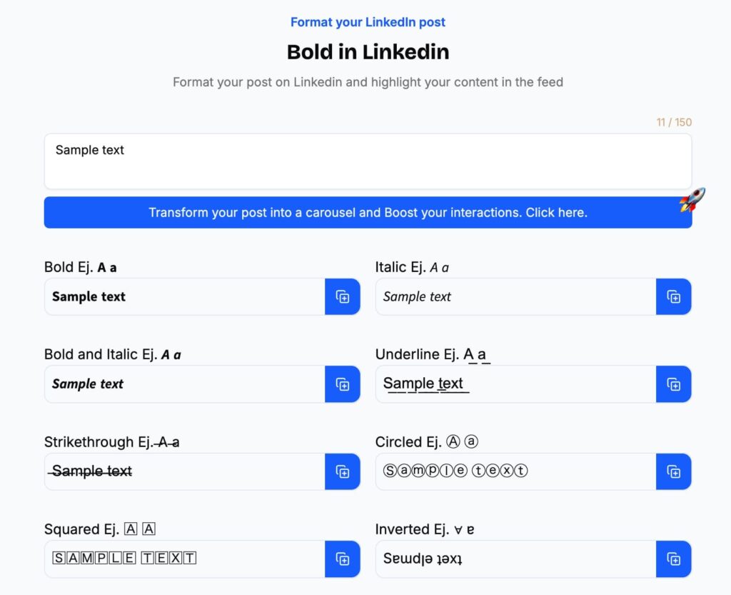 These LinkedIn text formatter tools are the easiest solution if you’re asking yourself how to bold text on LinkedIn and make sure your updates look clear and professional.