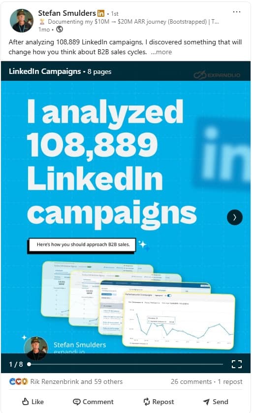 That said, if you’re serious about posting carousels consistently, you’ll probably want your own custom template or design workflow (e.g. Canva or Figma). So you can keep your branding consistent, depending on your LinkedIn content strategy.