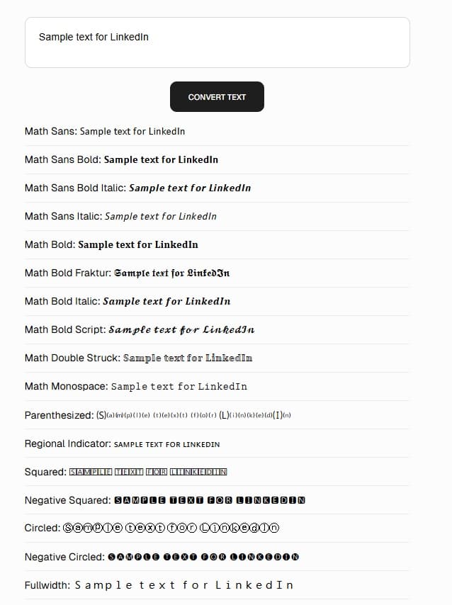 You don’t need fancy styles like squared, circled, or full-width text – no one uses those on LinkedIn.