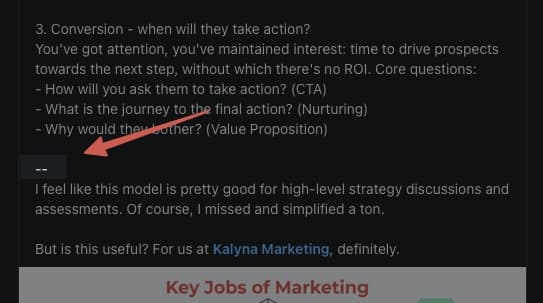 Pro tip: You can use three dashes (—) or emojis between sections to make transitions (e.g. into ending or CTA) more visible.