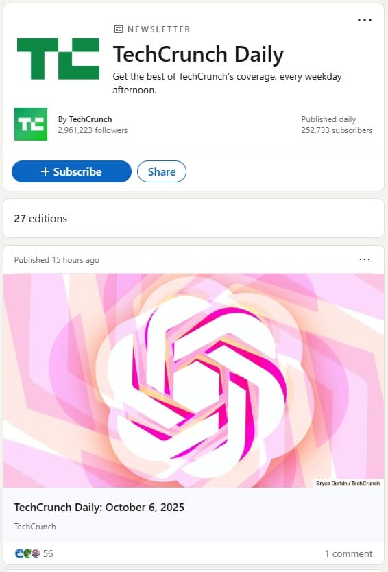 Like email newsletters but natively within LinkedIn. These are recurring LinkedIn publications subscribers can follow. Great for sharing updates or insights on a set schedule.