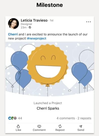LinkedIn’s built-in template for milestones, achievements, or internal highlights.