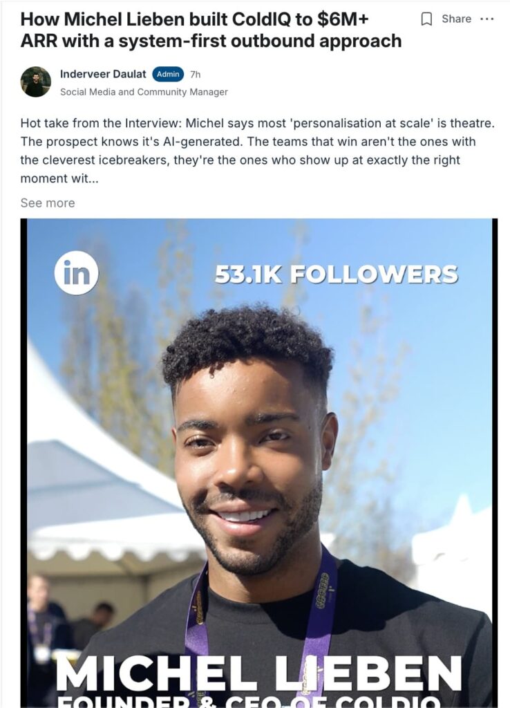 Expandi benefits when the broader GTM ecosystem gets sharper at outbound. Teams that know how to run signal-based sequences correctly are teams that get more out of tools like ours. The long-term benefit from the ecosystem growing covers the cost of the program, which means we don’t need to charge on top to justify the work.