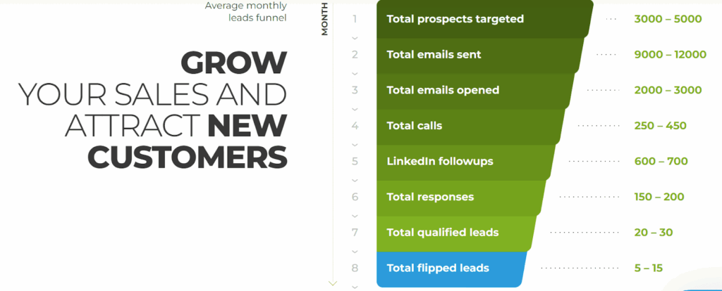 On average, the agency targets 3000 to 5000 leads per month for each client and flips five to 15 of them.