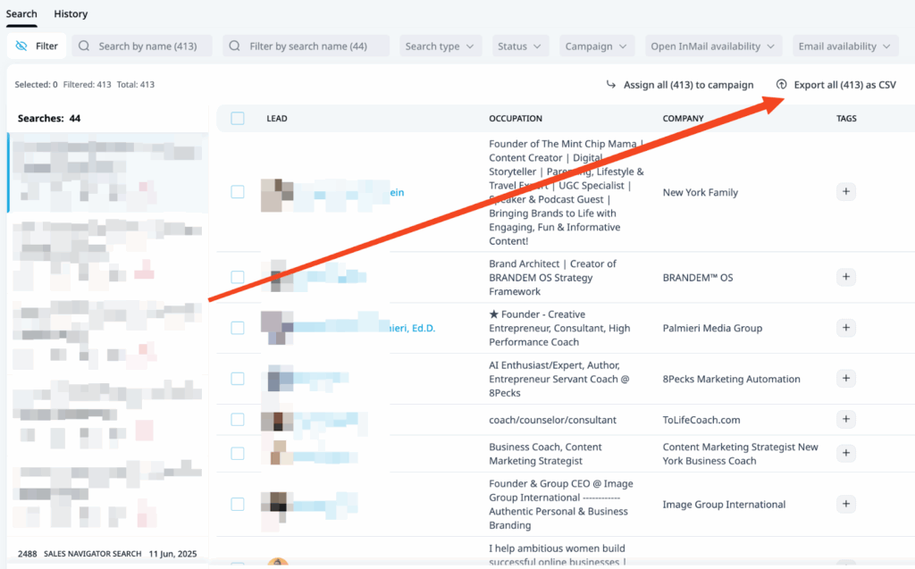 Once the search is complete, you can extract the contacts list into a CSV file.
