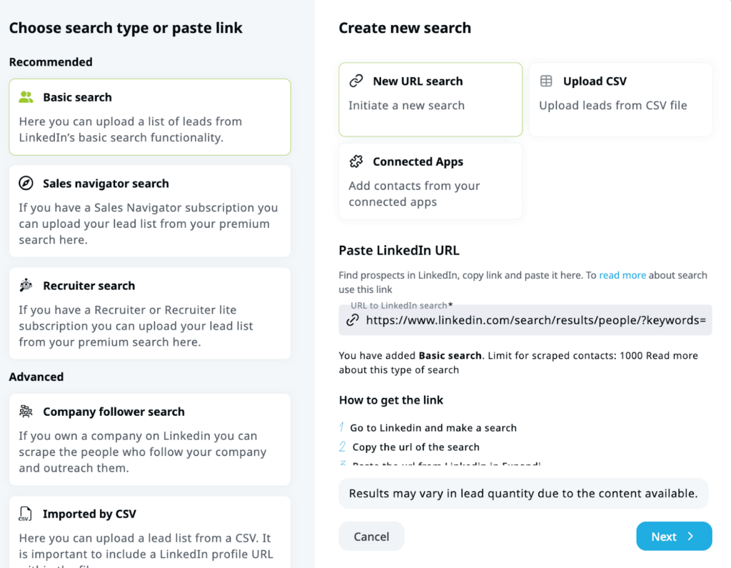 Here’s an insider guide on contact scraping of search results using Expandi: