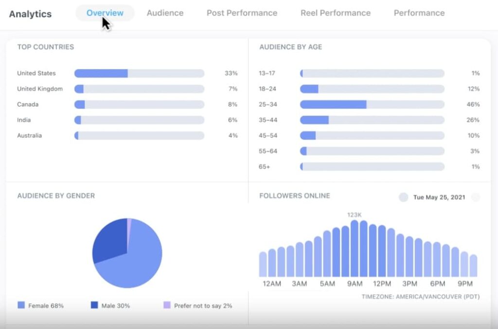 - Link in Bio – with click tracking and multiple link options, included on all plans.